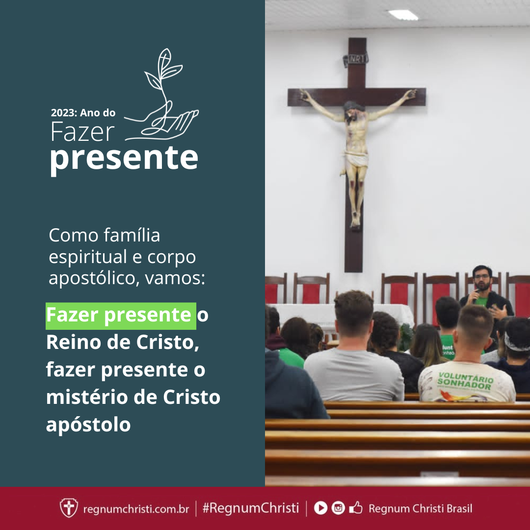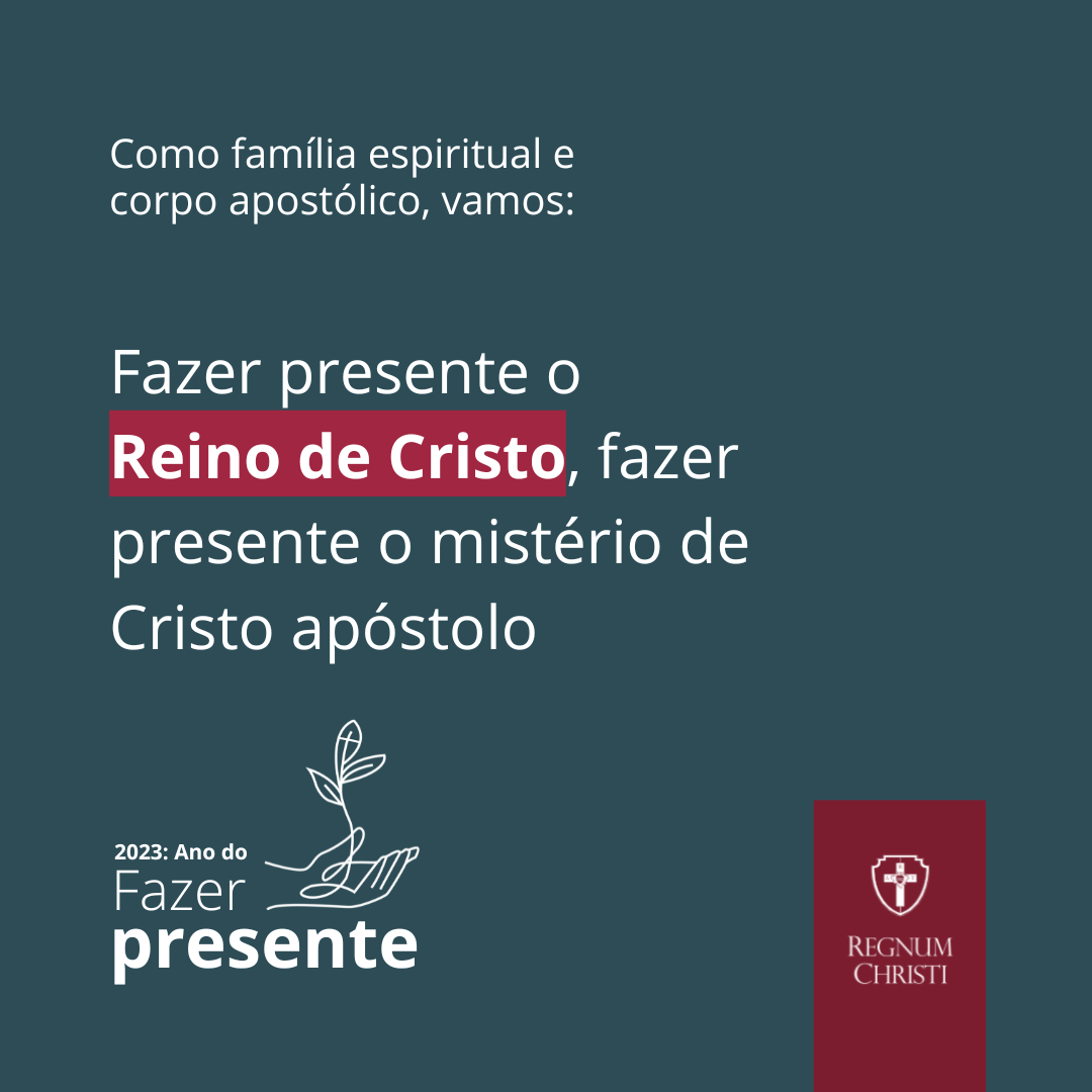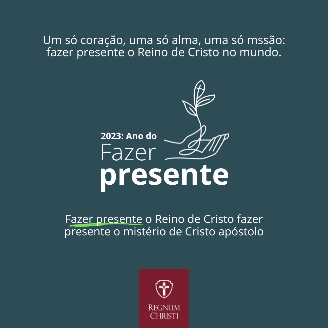 Anunciado pelo Colégio Diretivo Territorial na última live (outubro de 2022), o ano de 2023 será o ano do “Fazer presente”, baseado no nº 8 dos Estatutos da Federação Regnum Christi, que fala da missão do RC: