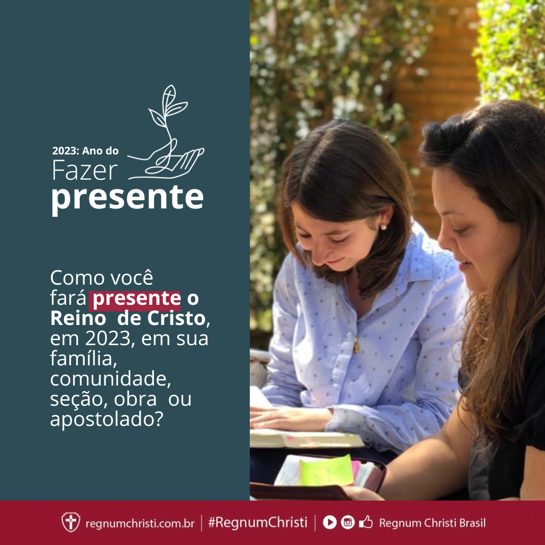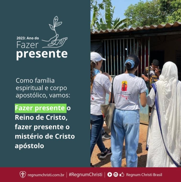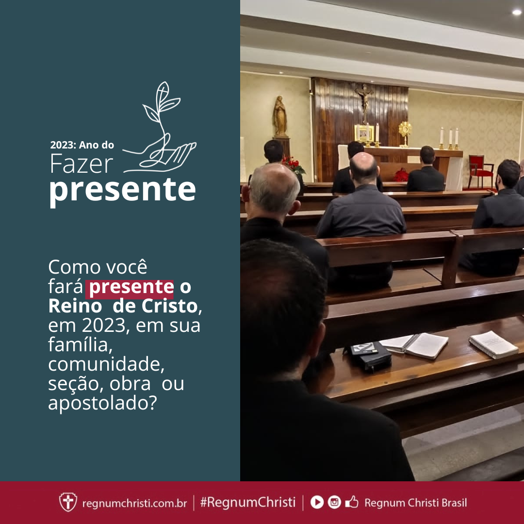 Anunciado pelo Colégio Diretivo Territorial na última live (outubro de 2022), o ano de 2023 será o ano do “Fazer presente”, baseado no nº 8 dos Estatutos da Federação Regnum Christi, que fala da missão do RC: