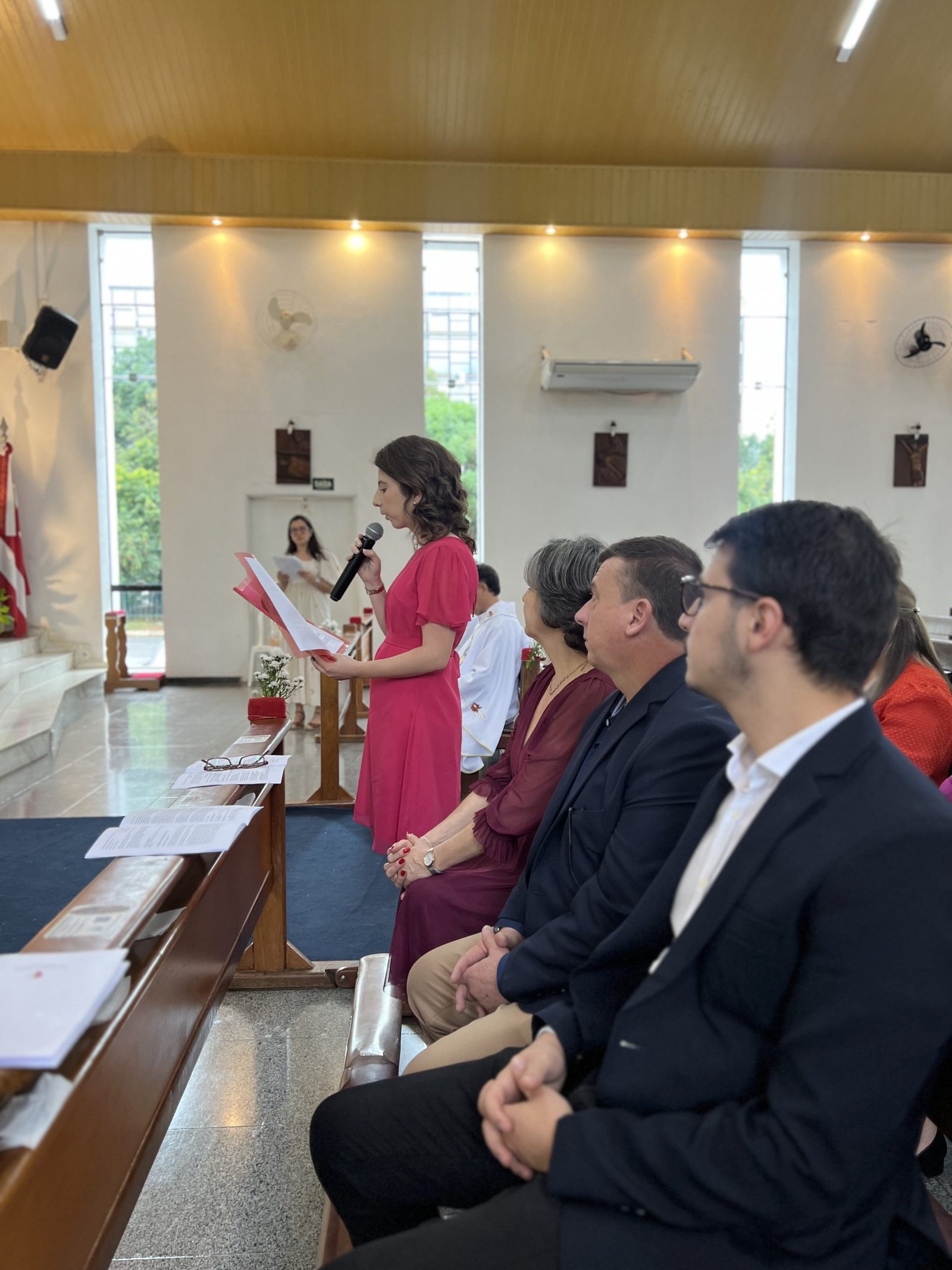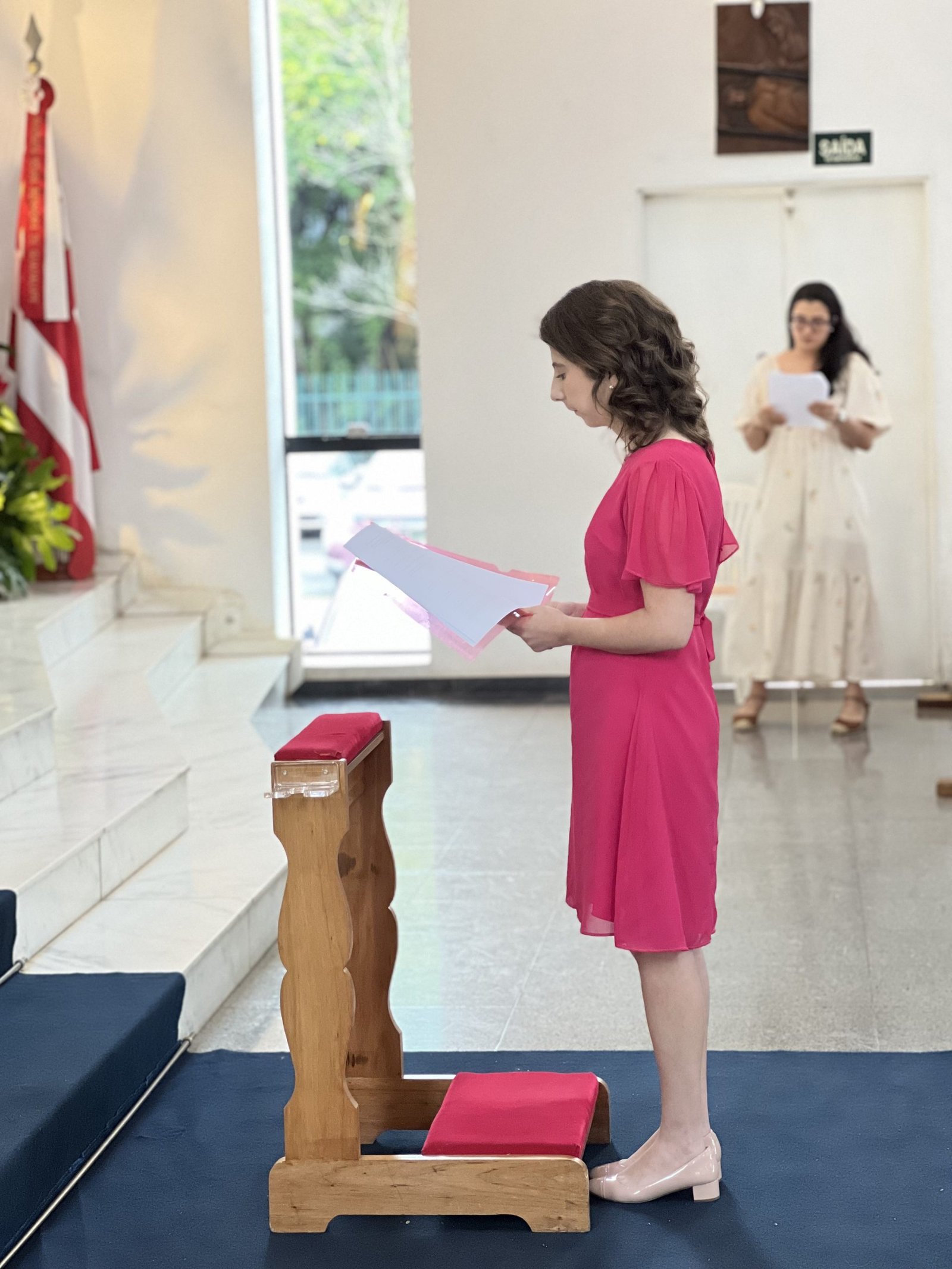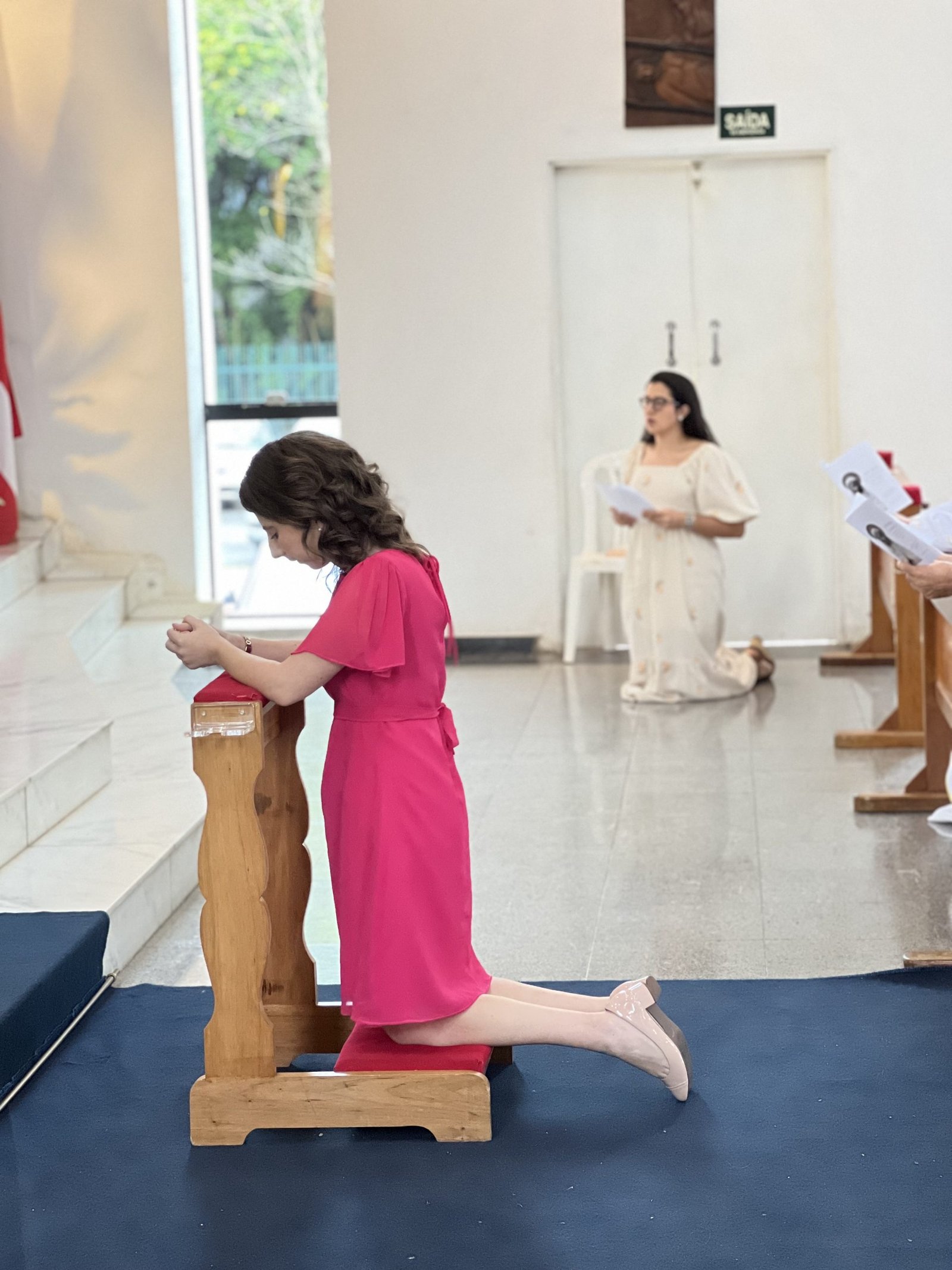 Ela aproveitou para partilhar um pouco com a comunidade sobre esse novo passo. “No comentário inicial da missa, dizia que ‘ser esposa de Cristo é uma realidade divina, a expressão de todo um mistério de semelhança e união’. Deus, em seus desígnios misteriosos, me convidou a viver uma vida de intimidade com Ele, como consagrada do Regnum Christi e agora sela em mim uma aliança definitiva como confirmação desse chamado. Meu coração está em festa, e peço a graça de permanecer sempre com o olhar fixo n’Ele”, concluiu.
