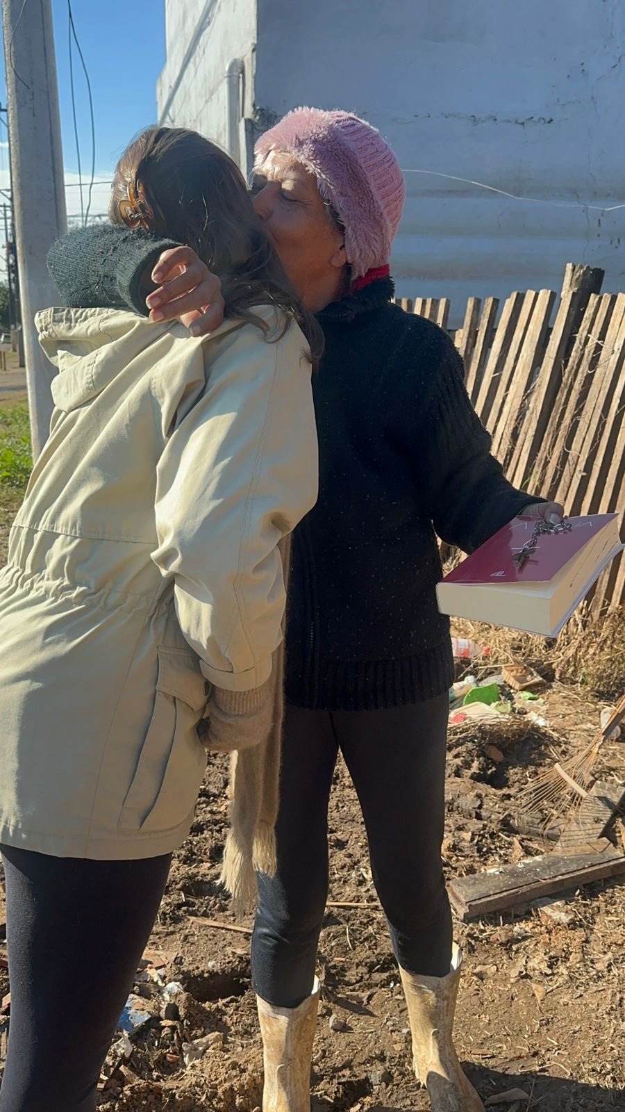 “Como membro do RC, sair em missão no Sul foi aceitar o chamado a vencer os medos e incertezas com abraços de cada um dos que entregamos um terço, uma roupa ou um colchão. E renovar o coração com o sentido do amor ao próximo. Não tive dúvidas de que tínhamos que ir encontrar as pessoas que encontramos”, Daniela Moretti, senhora do RC