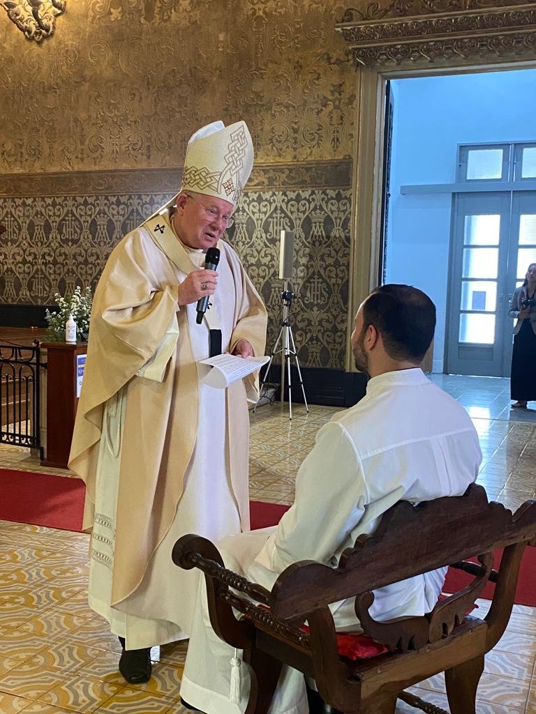Ao final da cerimônia, o diácono ouviu de Do Jaime os sinceros votos de que “possa pregar o Evangelho em seus lábios, em seus ouvidos, em seu coração, em seus pés e em suas mãos. Pois, somente quando o coração arde, é que os pés ganham asas, e pela ação da graça, o ministério sacerdotal torna-se profundamente frutuoso”.