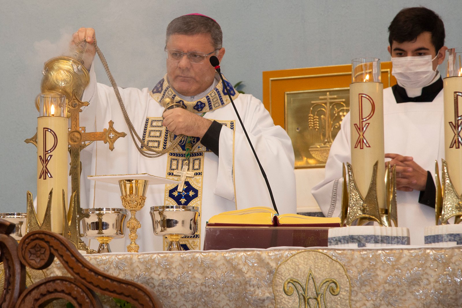Durante a homilia, Dom Paulo Cezar cumprimentou todos os presentes e fez uma reflexão sobre o Evangelho do dia, a passagem dos Discípulos de Emaús e lembrou a importância da comunidade.