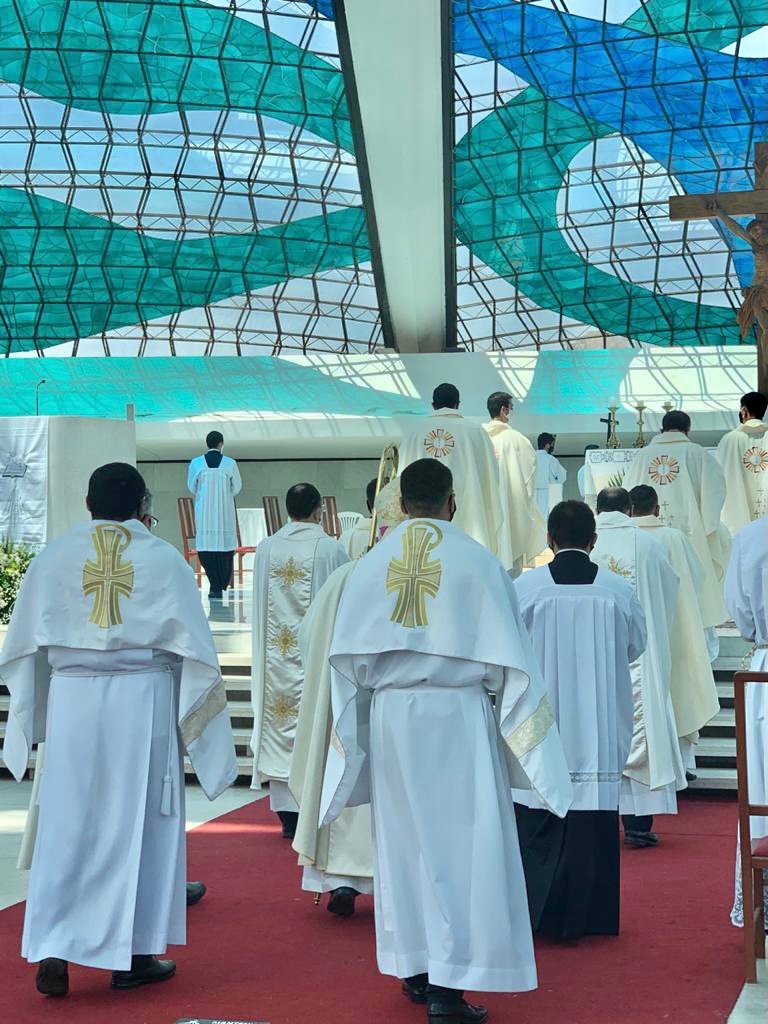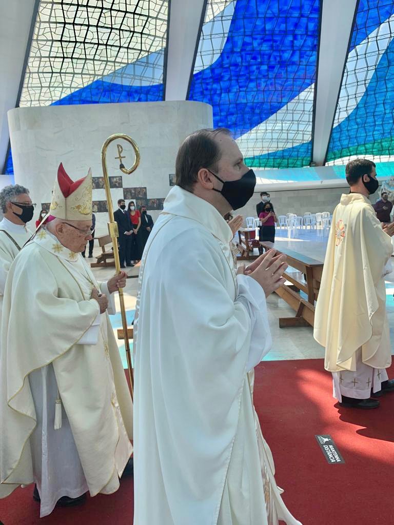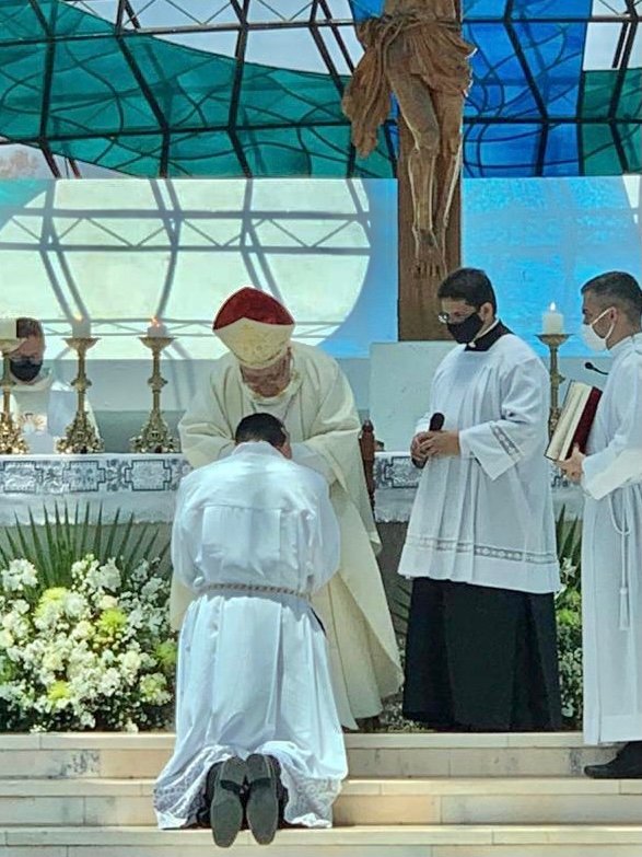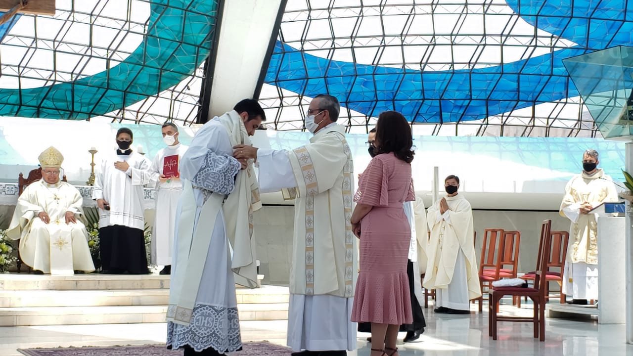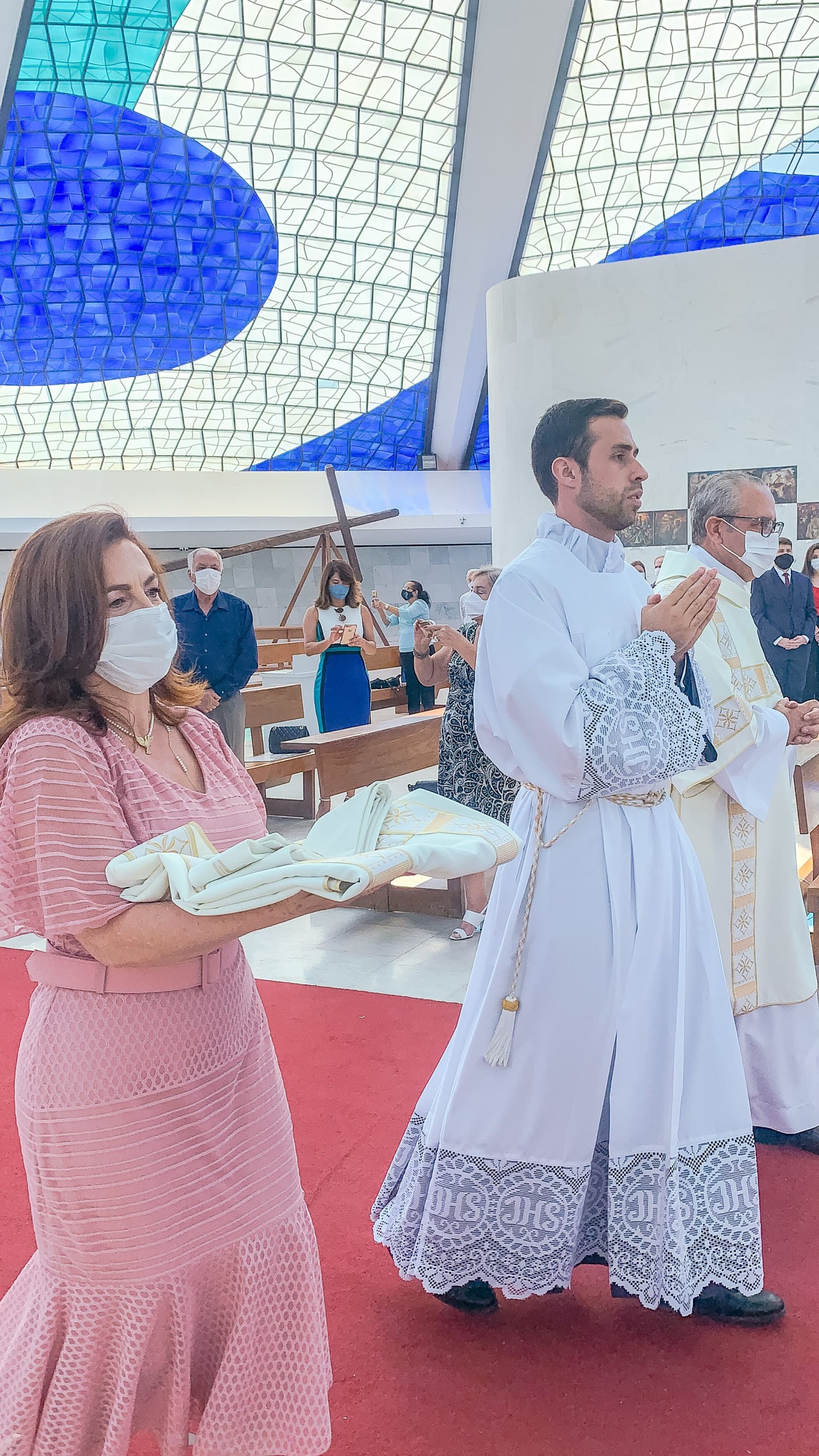 No início da celebração, o Pe. Cleomar cumprimentou e agradeceu a presença de Dom Emílio, que acompanha os legionários há muitos anos, e, novamente, renovou a adesão dos Legionários de Cristo e do Regnum Christi aos pastores da Igreja, aos bispos e ao papa Francisco. Também agradeceu os pais de João Paulo: Tadeu Garcia, que é diácono permanente, sua esposa, Luci e toda sua família ali presente. São os pais do diácono que entregam as vestes para o filho em sua ordenação, um momento sempre emocionante para toda a assembleia.